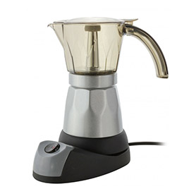 Cafetera Italiana para elaboración de café espresso filtrado ideal por su base eléctrica, cómoda y fácil de usar en cada momento del día, tu café listo en solo unos minutos, tan solo apretar un botón. Jarra extraíble de hasta 6 tazas, con vaso transparente acrílico muy resistente.